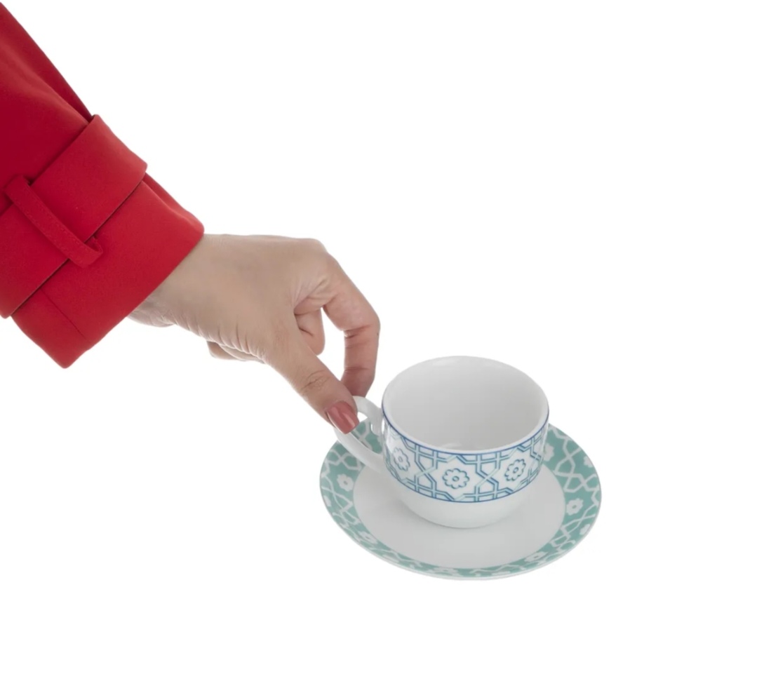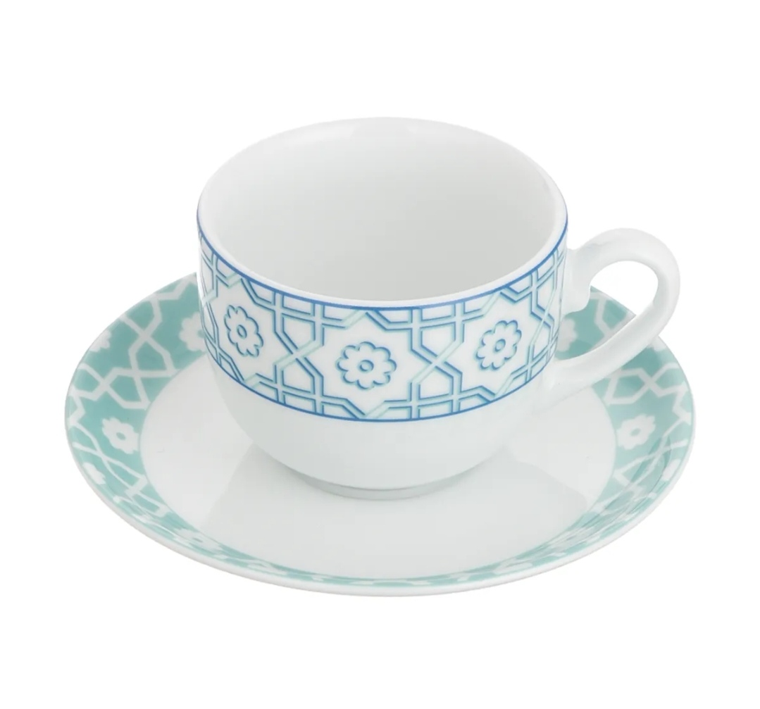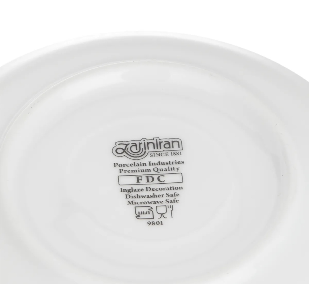 سرویس فنجان و نعلبکی 6 نفره، شامل 6 عدد فنجان و 6 عدد نعلبکی درجه چینی زرین، قابل استفاده در ماشین ظرفشویی و ماکروویو